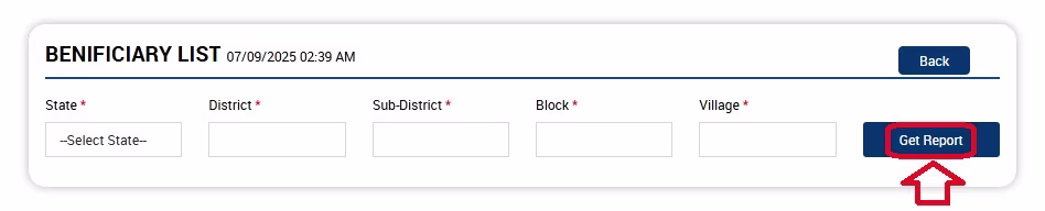 - तहसील (Sub-District) का चयन करने के बाद आपको अपने ब्लॉक (Block) का चयन करना होगा