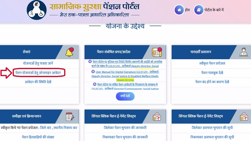 - आपको पेंशन योजनाओं हेतु ऑनलाइन आवेदन पर क्लिक करना होगा|